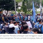 LAMONGAN–Mengalami kekalahan berturut-turut di BRI liga 1, Persela Lamongan kembali didemo oleh ratusan suporternya di depan Kantor Sekretariat Persela, Jalan Lamongrejo, Rabu