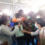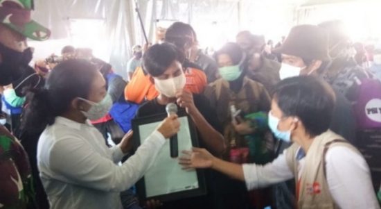 MAMUJU–Lukisan berjudul Ibu Pertiwi Menangis, karya Ilham, salah seorang anak penyintas di Stadion Manakarra Mamuju, akibat gempa 6,2 Magnitudo pada 15 Januari