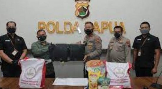 PAPUA–Wakapolda Papua Brigjen Pol Eko Rudi Sudarto menerima secara langsung bantuan sembako sebanyak 3.000 paket dan 1.500 lembar masker dari Presiden Republik