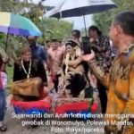 POLMAN – Pemandangan unik terjadi pada pesta pernikahan di Kabupaten Polewali Mandar, Sulawesi Barat. Kedua mempelai diarak menggunakan gerobak dorong menuju tempat
