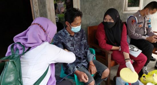 TANGGAMUS–Dalam rangka percepatan dan akslerasi vaksinasi di wilayah hukumnya, Polsek Kota Agung Polres Tanggamus bersama nakes menggelar vaksinasi dari pintu ke pintu