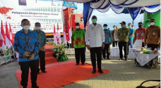 MANOKWARI-–Presiden Joko Widodo bersama Menteri Perdagangan (Mendag) Agus Suparmanto, sejumlah gubernur dan wakil gubernur di Indonesia, Jumat (4/12) melepas ekspor sejumlah komoditas