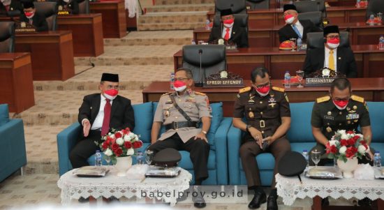BABEL –Gubernur Kepulauan Bangka Belitung (Babel) Erzaldi Rosman dan Wakil Gubernur Babel Abdul Fatah mengikuti rapat paripurna dengan agenda Mendengarkan Pidato Kenegaraan