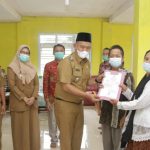PRINGSEWU – Bupati Pringsewu Sujadi, Kamis (13/1/2022), menyerahkan Surat Pernyataan Hibah atas tanah seluas tiga hektar kepada Kementerian Agama. Penyerahan surat pernyataan