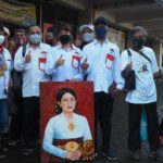 SURABAYA–Di depan Pasar Tambahrejo, Kota Surabaya, Rabu (2/3) sejak pagi hari, sekelompok orang berkumpul membawa sebidang kanvas dilapis plastik mika. Wajah Puan