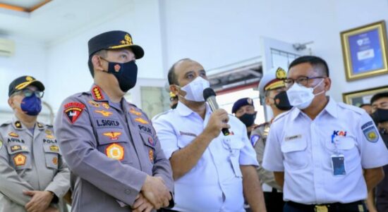 JAKARTA–Kapolri Jenderal Listyo Sigit Prabowo meninjau Stasiun Pasar Senen, Jakarta Pusat, dalam rangka mengecek kesiapan pelaksanaan pengamanan arus mudik Hari Raya Idul