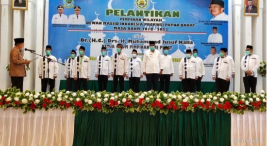 MANOKWARI— Ketua Umum Dewan Masjid Indonesia (DMI) H.Muhammad Jusuf Kalla melantik pengurus wilayah (PW) DMI Papua Barat yang diketuai oleh Wakil Gubernur