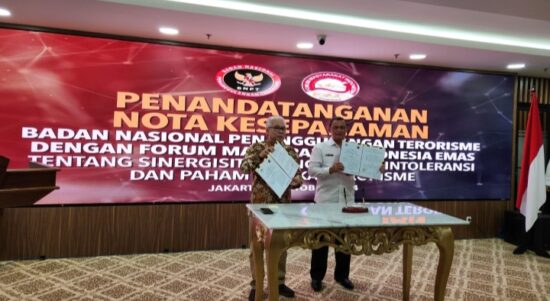 JAKARTA— Badan Nasional Penanggulangan Terorisme (BNPT) bersama Forum Masyarakat Indonesia Emas (Formas) menandatangani Memorandum of Understanding (MoU) untuk memperkuat kerja sama dalam