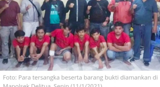 DELITUA – Komplotan perampok bersenjata tajam (sajam) ditangkap personel Unit Reskrim Polsek Delitua, Minggu (10/1/2021). Dua dari enam tersangka yang masih berusia belasan