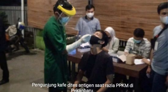 PEKANBARU – Tiga pengunjung kafe diketahui reaktif Covid-19 setelah dites swab antigen. Mereka terjaring dalam razia yang digelar Satgas Covid-19 Kota Pekanbaru,