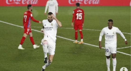JAKARTA–Sebuah lesatan bola pendek dari kaki Karim Benzema mengguncang gawang Granada di pengujung laga menambah gol Real Madrid menjadi 2-0 dalam pertandingan