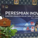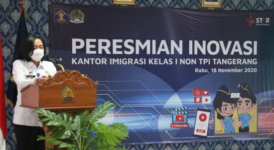 TANGERANG — Kepala Kantor Wilayah Imigrasi Tangerang R Andika Dwi Prasetya, bersama Kepala Bidang Perizinan dan Informasi Keimigrasian Edward Lenin dan Kepala