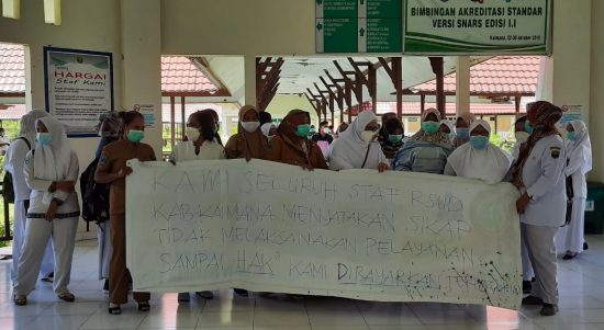 KAIMANA–Puluhan tenaga kesehatan di Rumah Sakit Umum Daerah (RSUD) Kaimana, Papua Barat, baik yang fungsional maupun non fungsional melakukan aksi mogok kerja