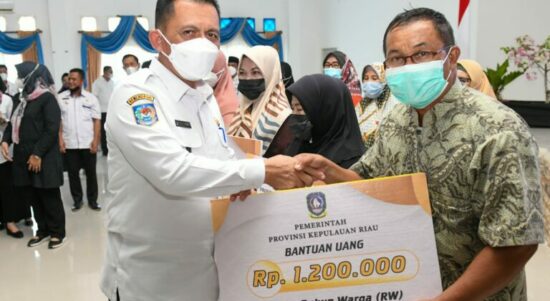 Gubernur Ansar menyerahkan bantuan di Lingga. TANJUNGPINANG – Gubernur Kepulauan Riau Ansar Ahmad menyerahkan bantuan kepada RT/RW, Operasional Posyandu dan bantuan Transportasi