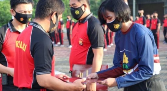 BENGKULU – Kapolda Bengkulu Irjen Pol Drs Teguh Sarwono, M.Si, Jumat (19/02/2021) memberikan penghargaan kepada tiga personel Direktorat Sabhara Polda Bengkulu. Kabid