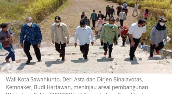 SUMBAR–Dirjen Pembinaan Pelatihan Vokasi dan Produktivitas (Binalavotas) Kementerian Tenaga Kerja Budi Hartawan dan rombongan mengunjungi kota Sawahlunto, Sabtu (7/8/2021). Kehadiran Budi Hartawan