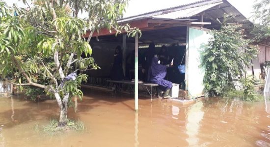 PANGKALAN BUN–Sekolah Alam Bina Insan di jalan Rusa lll RT 14 Kelurahan Sidorejo, Kecamatan Arut Selatan, Kabupaten Kotawaringin Barat direndam banjir. Tetapi