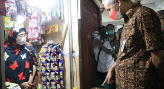 MAGELANG–Gubernur Jawa Tengah Ganjar Pranowo dalam sidak di Pasar Muntilan, Kabupaten Magelang, Rabu, menemukan harga minyak goreng curah lebih murah dibanding harga