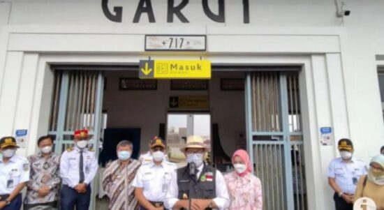 GARUT–Gubernur Jawa Barat Ridwan Kamil melakukan peninjauan langsung untuk memastikan kesiapan jalur Kereta Api (KA) Stasiun Cibatu-Garut yang baru selesai tahap pembangunannya