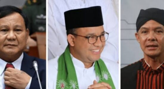 Prabowo Subianto, Anies Baswedan, dan Ganjar Pranowo. (Kaltim today) JAKARTA – Lembaga survei Indo Barometer, Sabtu (11/11), merilis hasil survei terbarunya. Bakal