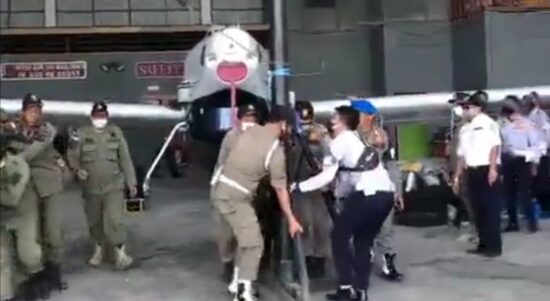 MALINAU – Anggota Satuan Polisi Pamong Praja (Satpol PP) Kabupaten Malinau, Kalimantan Utara, menggusur keluar pesawat Susi Air dari hanggar Bandara Kolonel