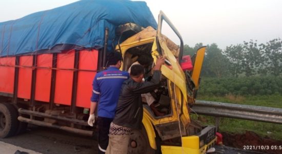 TEGINENENG – Terjadi kecelakaan lalu-lintas di KM 110+000 Jalur A, Jalan Tol Bakauheni Terbanggi Besar (Bakter), Minggu (03/10) Pukul 05:00 WIB. Kecelakaan