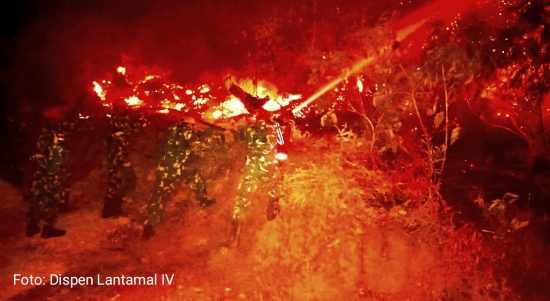 JAKARTA – Tentara Nasional Indonesia (TNI) Angkatan Laut mengerahkan prajurit Pangkalan TNI AL Tanjung Balai Karimun untuk membantu memadamkan kebakaran hutan dan