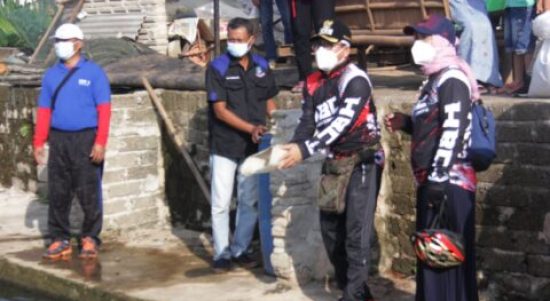 METRO–Walikota Metro Wahdi Siradjuddin menyerahkan bibit ikan kepada Himpunan Nelayan Seluruh Indonesia (HNSI) di Jalan Kencana Indah Margorejo, Kecamatan Metro Selatan, Minggu