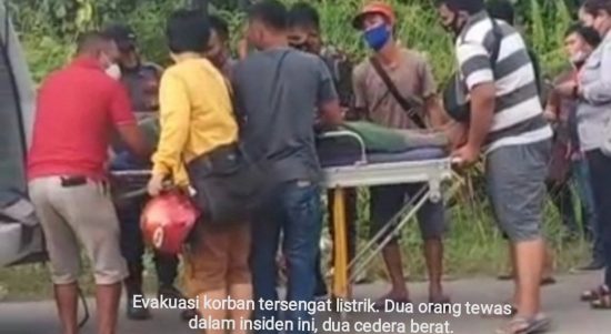SENDAWAR – Empat orang yang diduga pegawai sub kontraktor perusahaan telekomunikasi, tersengat listrik bertegangan tinggi saat memasang tiang kabel. Akibat kejadian tersebut,