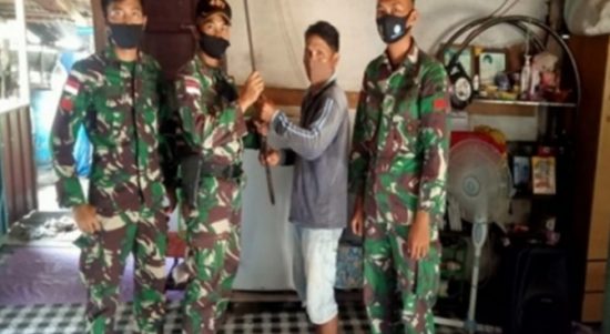Tersentuh Kebaikan TNI di Perbatasan, 2 Warga Serahkan Senpi Penabur dan Lantak