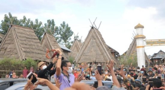 BIMA–Menteri Pariwisata dan Ekonomi Kreatif RI Sandiaga Salahudin Uno didampingi Gubernur Nusa Tenggara Barat Dr H Zulkieflimansyah, SE, MSc, menyaksikan pacuan kuda