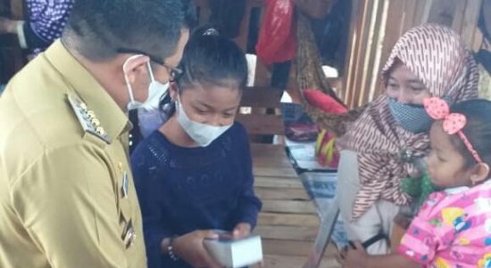 BABEL–Seorang anak penjual gorengan di Kampung Parit 9, Kecamatan Toboali mendapatkan hadiah berupa HP atau smartphone dari Bupati Bangka Selatan, H. Riza