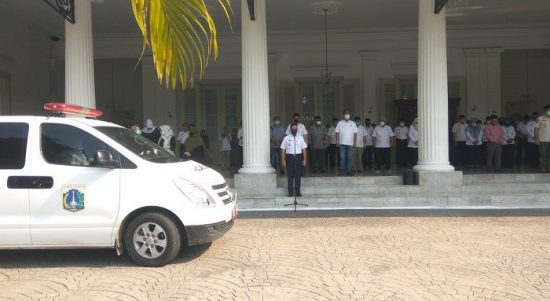 JAKARTA – Gubernur DKI Jakarta, Anies Baswedan dan seluruh Aparatur Sipil Negara (ASN) di lingkungan Pemprov DKI Jakarta menggelar upacara penghormatan terakhir