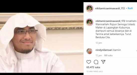 JAKARTA – Artis kontroversial Nikita Mirzani mengunggah foto Ustaz Maheer At Thuwailibi alias Soni Eranata meninggal dunia didalam penjara Mabes Polri, Jakarta
