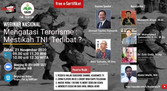 SAMARINDA – Adanya usulan dan wacana akan dilibatkannya TNI dalam penumpasan terorisme di Indonesia, memantik ragam pendapat. Guna menyelaraskan itu, Academics TV