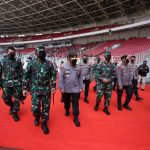 JAKARTA–Panglima TNI Marsekal Hadi Tjahjanto dan Kapolri Jenderal Listyo Sigit Prabowo melakukan peninjauan langsung vaksinasi massal di Stadion Utama Gelora Bung Karno