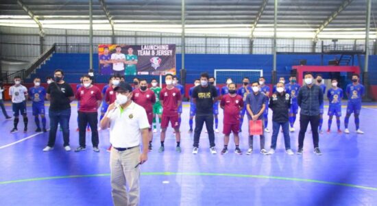 METRO–Walikota dan Wakil Walikota Metro me-launching Liga Futsal Profesional Indonesia 2021-2022, di Giga Futsal Arena Margorejo, Sabtu (18/12/2021). Lukman Hakim Pembina sekaligus