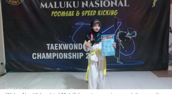 LAMONGAN–Medsli Emas Taekwondo kembali ditorehkan oleh Widya Nur Hidayahtul Ma’rifah pada ajang Kejuaraan Tingkat Nasional Best Of the Best E-Poomsae & Speedkicking Maluku