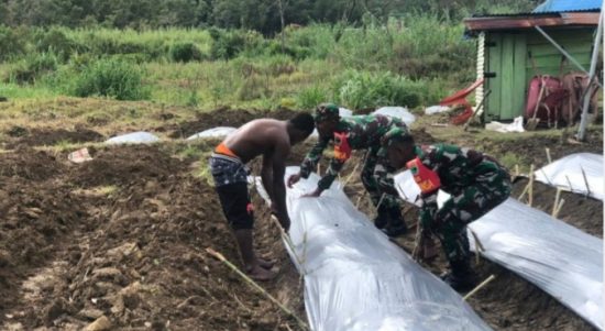 PAPUA BARAT –  Babinsa Koramil 1801-05/Anggi mengajak warga Kampung Irai, Kabupaten Pegaf, Distrik Anggi membuka lahan tidur menjadi lahan produktif untuk mengurangi