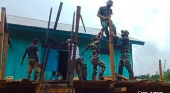Prajurit TNI Bantu Renovasi Rumah Tokoh Adat Papua di Perbatasan