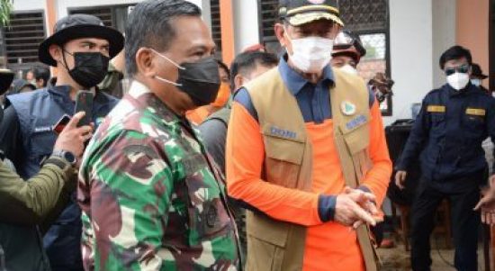SUMEDANG–Kepala Badan Nasional Penanggulangan Bencana (BNPB) Letjen TNI Doni Monardo didampingi Pangdam III/Siliwangi Mayjen TNI Nugroho Budi Wiryanto meninjau bencana longsor di