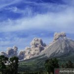 KABANJAHE – Gunung Sinabung kembali meletus dan mengeluarkan awan panas guguran (APG) dengan jarak luncuran hingga 4.500 meter ke arah tenggara. Tinggi