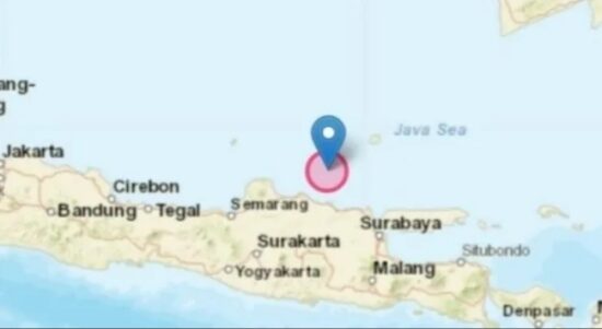 Peta pusat gempa berkekuatan magnitudo 6,6 di Laut Jawa pada jarak 65 km arah barat laut Kota Tuban. (Foto: BMKG) JAKARTA –