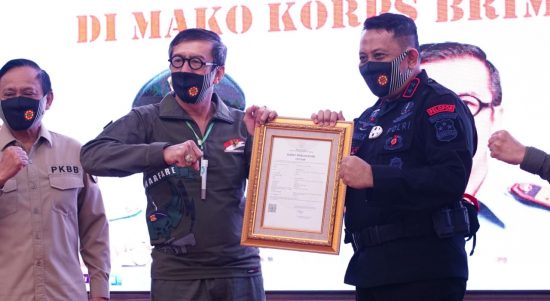 DEPOK – Menteri Hukum dan Hak Asasi Manusia (Menkumham) Yasonna Hamonangan Laoly menyerahkan sertifikat Hak Kekayaan Intelektual untuk 91 ciptaan dan karya