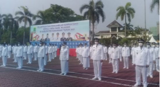 KABUPATEN KARAWANG–Sebanyak 177 kepala desa (kades) terpilih 2021 se-Kabupaten Karawang resmi dilantik Bupati Karawang dr Hj Cellica Nurrachadiana di Plaza Pemda Karawang