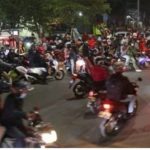 BEKASI–Ribuan pemudik yang mengendarai sepeda motor kembali menerobos penyekatan di Jalur Pantura Kedungwaringin, perbatasan Kabupaten Bekasi-Karawang, pada Minggu (9/5/2021) pukul 22.40 WIB.