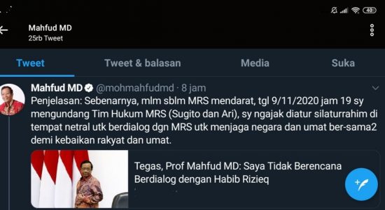 JAKARTA – Menteri Koordinator Bidang Politik Hukum dan Keamanan (Menko Polhukam) Mahfud MD, buka-bukaan. Pihaknya pernah merancang silaturahmi sebelum Muhammad Rizieq Shihab