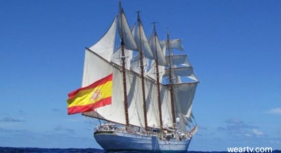 TIDORE – Kapal Latih Angkatan Laut Spanyol Juan Sebastian Elcano tiba di Kota Pulau Tidore, Provinsi Maluku Utara, Sabtu (27/3/2021). Kapal berlabuh