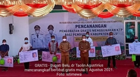 ATAMBUA – Pengobatan gratis menggunakan KTP resmi dicanangkan oleh Pemda Belu di Puskesmas Haliwen, Desa Kabuna, Kecamatan Kakuluk Mesak, 26 Juli 2021.