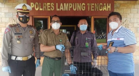 GUNUNGSUGIH – Polres Lampung Tengah serahkan seekor Owa siamang, ke Balai Konservasi Sumber Daya Alam (BKSDA), Wilayah III Bengkulu. Kasat Reskrim AKP